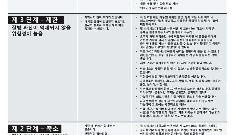 필수서비스(슈퍼마켓, 약국, 클리닉 등 필수 서비스만 )만 오픈…