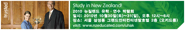 2010년 10월 30일과, 31일 양일간 서울 삼성동 그랜드인터컨티넨탈호텔 2층 오키드룸에서 뉴질랜드 교육박람회가 개최됩니다.