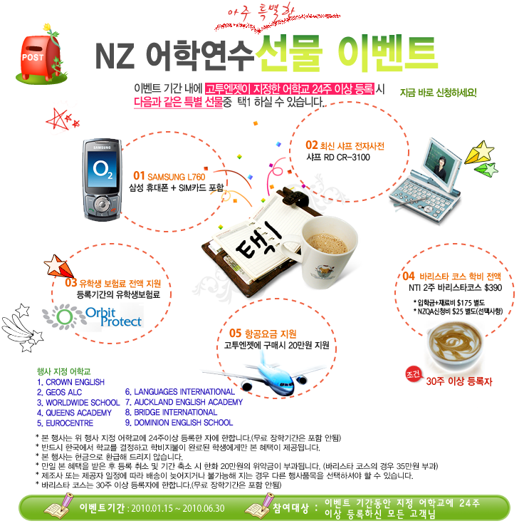 * 본 행사는 위 행사 지정 어학교에 24주이상 등록한 자에 한합니다.(무료 장학기간은 포함 안됨)