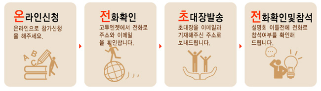 이번 기회를 활용하시고자 하는 분들은 하단 신청서로 들어가셔서 해당 내용을 빠짐없이 기재하여 보내주시면 저희 고투엔젯에서 초청장을 이메일과 우편으로 보내드리게 될 것입니다.