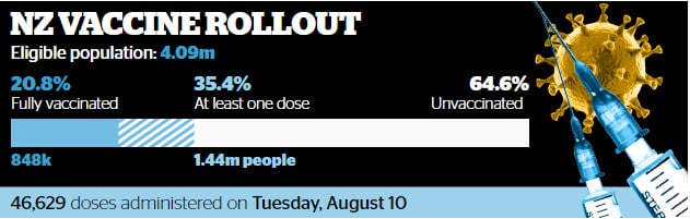 8월 10일 현재 뉴질랜드에서 백신 접종상황은 다음과 같습니다.
