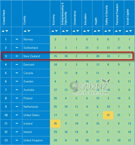 뉴질랜드, 2014 세계 번영지수 3위